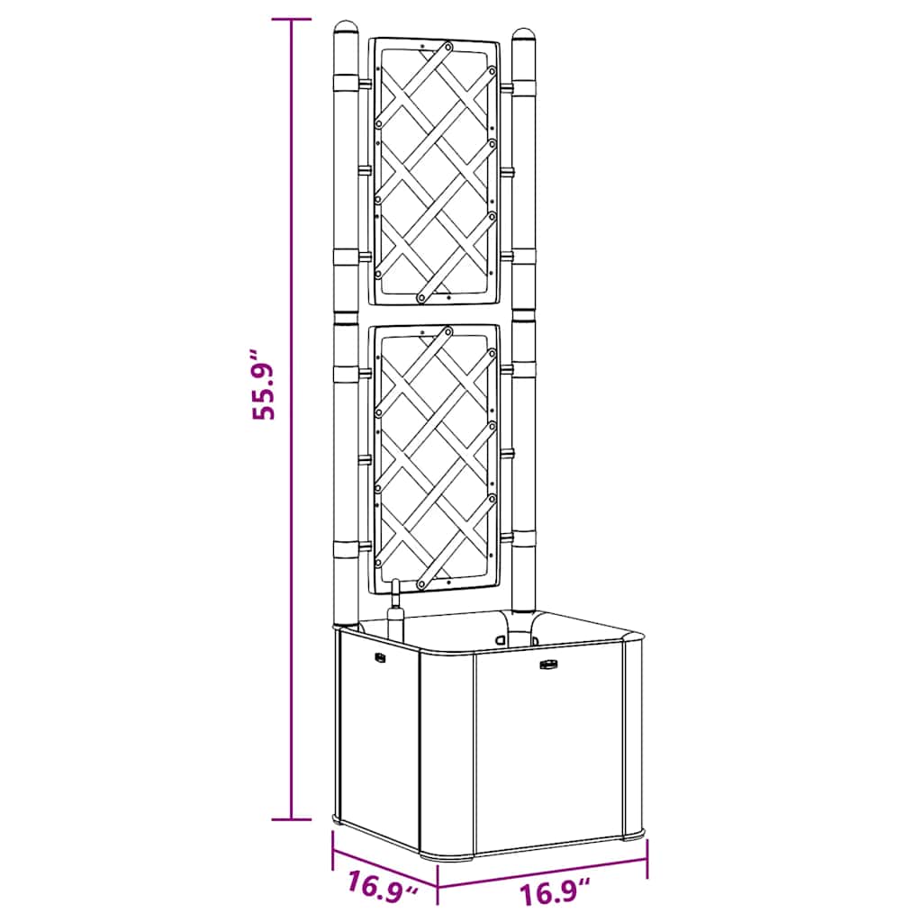 Het ingebouwde latwerk biedt uitstekende ondersteuning aan klimplanten, zoals kruidenplanten, tomatenplanten en bonenplanten. De tuinbak is gemaakt van robuust uv-, weer- en vorstbestendig kunststof en is geschikt voor binnen- en buitengebruik. Het ontwerp heeft een op echt rattan lijkende structuur. Het materiaal is wasbaar en gemakkelijk schoon te maken. Deze plantenbak geeft de planten automatisch water met vocht uit het waterreservoir van 35 liter. De wateroverloopgaten voorkomen dat er water in de bak blijft staan. Een niveau-indicator is ook inbegrepen.